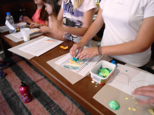 Στις δραστηριότητες που ακολούθησαν τα παιδιά προσπάθησαν να φτιάξουν το δικό τους ψηφιδωτό: τον αετό με την πέρδικα, το βλαστάρι του κισσού, τα γεωμετρικά κοσμήματα.