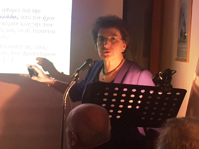 Το θέμα της διάλεξης ήταν: «Έλληνας, Γραικός, Ρωμιός. Από τις αυτοκρατορίες στο έθνος-κράτος» με ομιλήτρια την κα. Όλγα Κατσιαρδή-Hering, Ομότιμη Καθηγήτρια του Εθνικού και Καποδιστριακού Πανεπιστημίου Αθηνών.