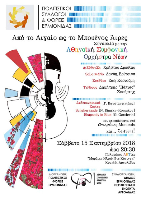 Το Ι.Λ.Μ.Ε. συμμετέχει στη διοργάνωση των πολιτιστικών φορέων της Ερμιονίδας, οι οποίοι προσκάλεσαν την Αθηναϊκή Συμφωνική Ορχήστρα Νέων για μια συναυλία, η οποία θα διεξαχθεί στον πολυχώρο Αρτίκι το Σάββατο 15-9-2018 και ώρα 20:30.