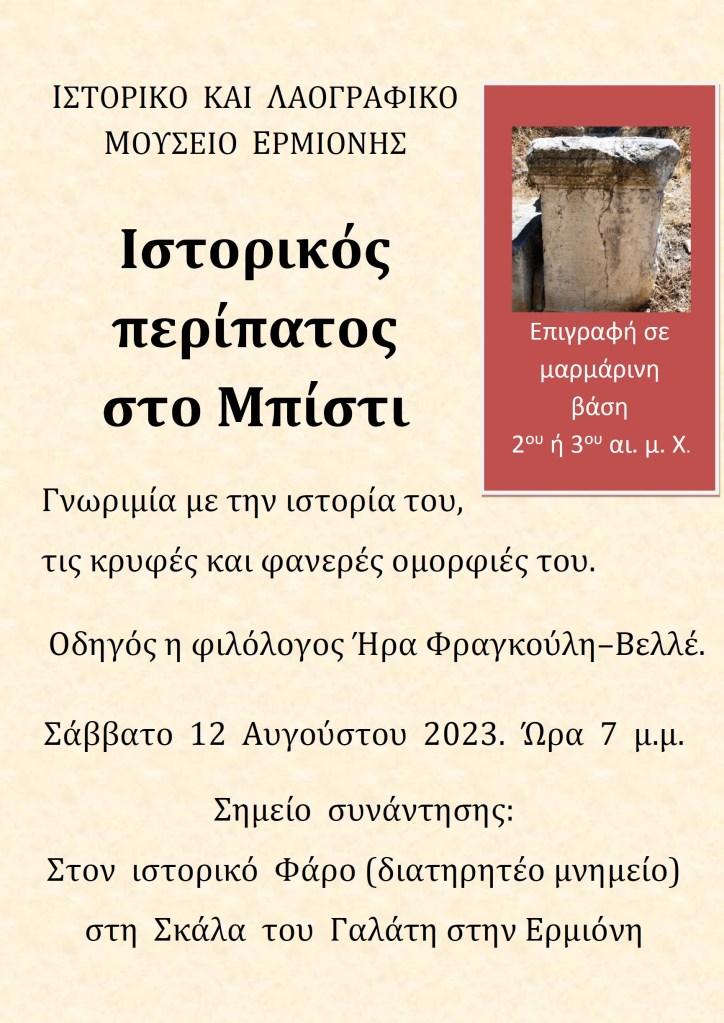 Ιστορικός περίπατος στο Μπίστι 2023 Κοινοποιήστε: Πατήστε για κοινοποίηση στο Facebook(Ανοίγει σε νέο παράθυρο) Facebook