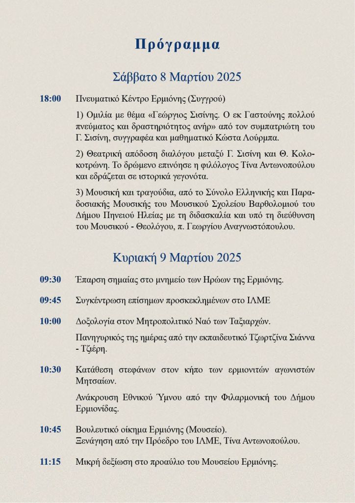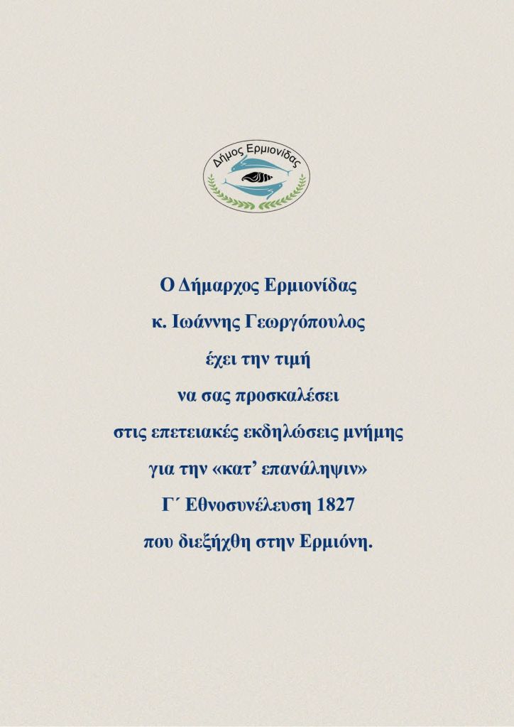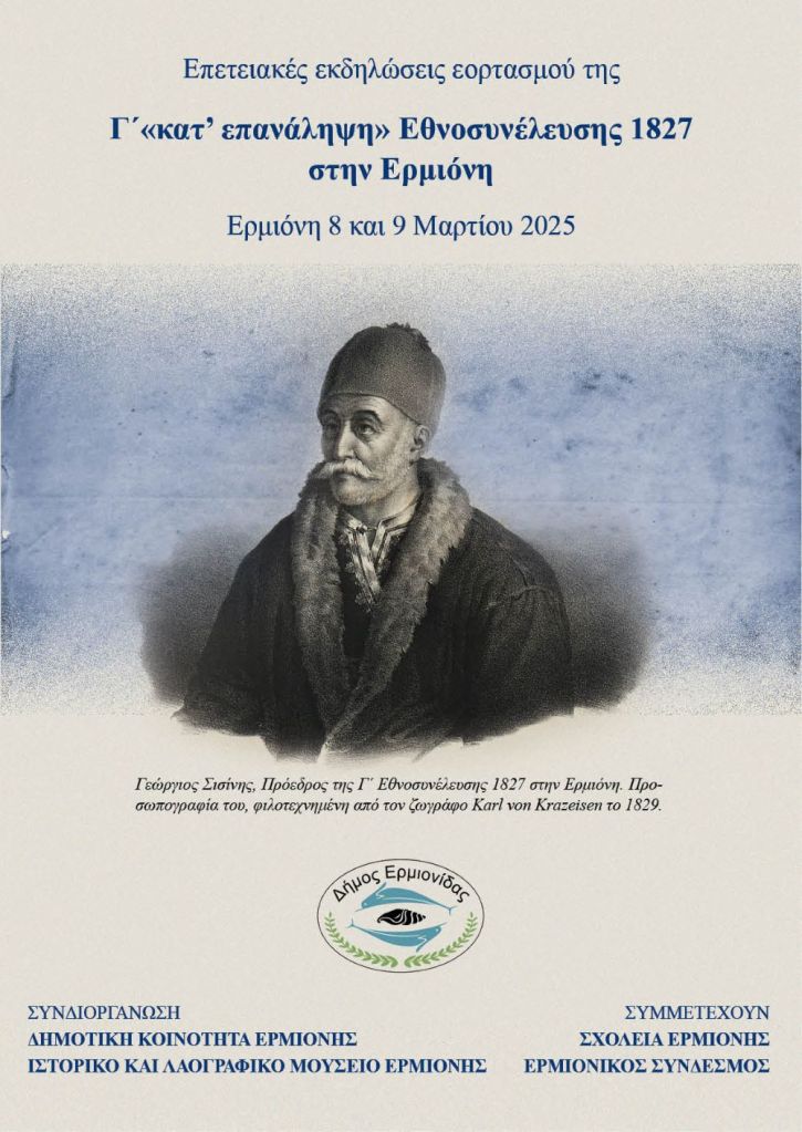 Επετειακές εκδηλώσεις 2025 για την Γ΄ Εθνοσυνέλευση 1827 στην Ερμιόνη Κοινοποιήστε: Πατήστε για κοινοποίηση στο Facebook(Ανοίγει σε νέο παράθυρο) Facebook