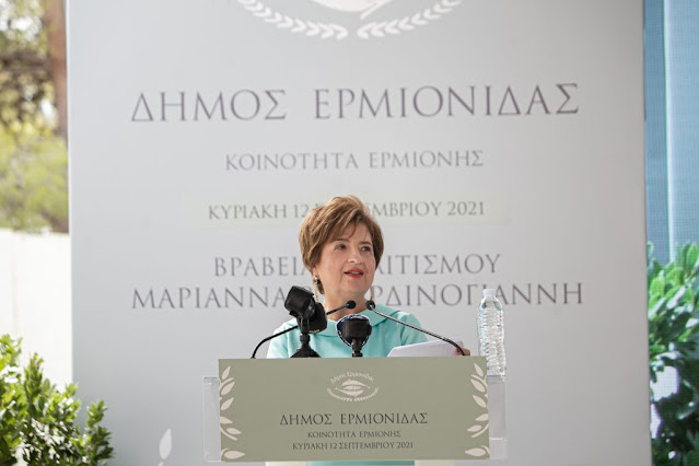 - Κυριακή 12 Σεπτεμβρίου 2021. Απονεμήθηκαν και φέτος τα βραβεία πολιτισμού «ΜΑΡΙΑΝΝΑ Β. ΒΑΡΔΙΝΟΓΙΑΝΝΗ» στην Ερμιόνη από την Πρόεδρο της Δημοκρατίας κα Κατερίνα Σακελλαροπούλου στους εξής: κα Άντρη Αναστασιάδη, κ. Roderick Beaton, κα Ελένη Αρβελέρ, κα Μαρίνα Λαμπράκη – Πλάκα και στο Ιστορικό και Λαογραφικό Μουσείο Ερμιόνης.