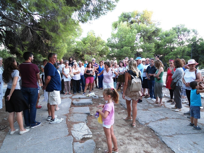 Έτσι και φέτος το δροσερό απόγευμα του Σαββάτου 11-8-2018 είχαμε την ευκαιρία, περισσότεροι των 50 ατόμων, να παρακολουθήσουμε την πραγματικά εξαιρετική ξενάγηση της Ήρας στο κατάσπαρτο από ναούς, κατά τον Παυσανία, αρχαίο «Ποσείδιον», (Μπίστι).